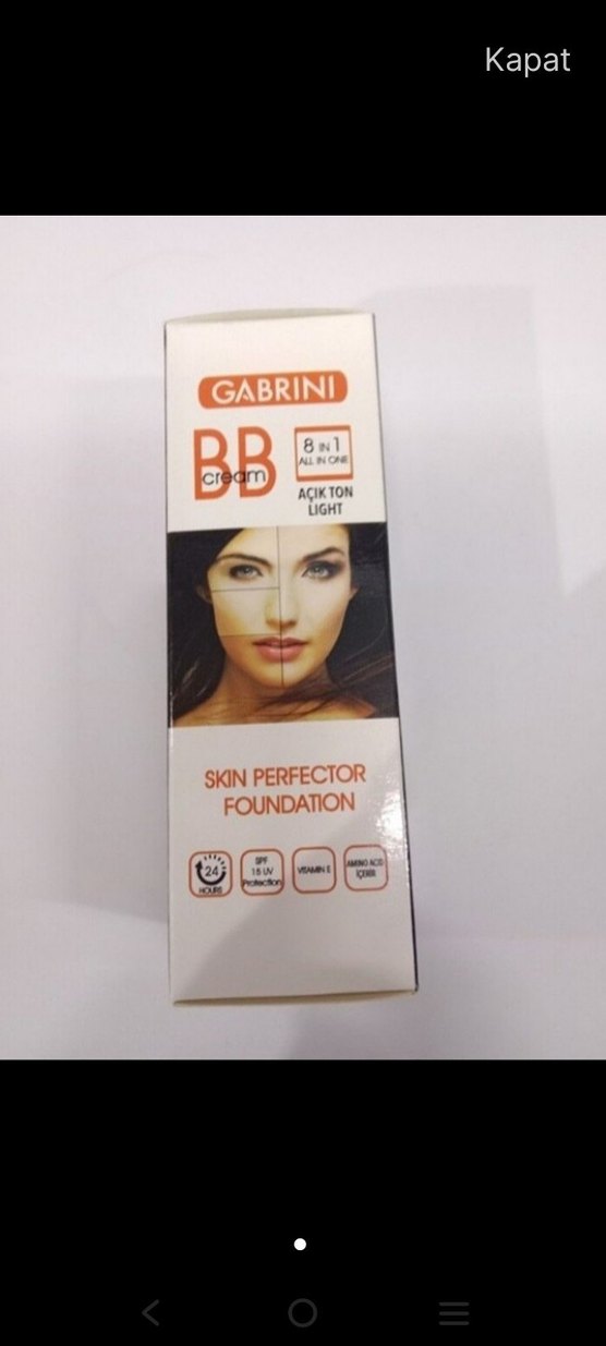 Gabrini BB krem açık ton bej renginde, SPF 24 koruma ve E vitamini içeren 8-in-1 cilt kusursuzlaştırıcı fondöten sunar.
