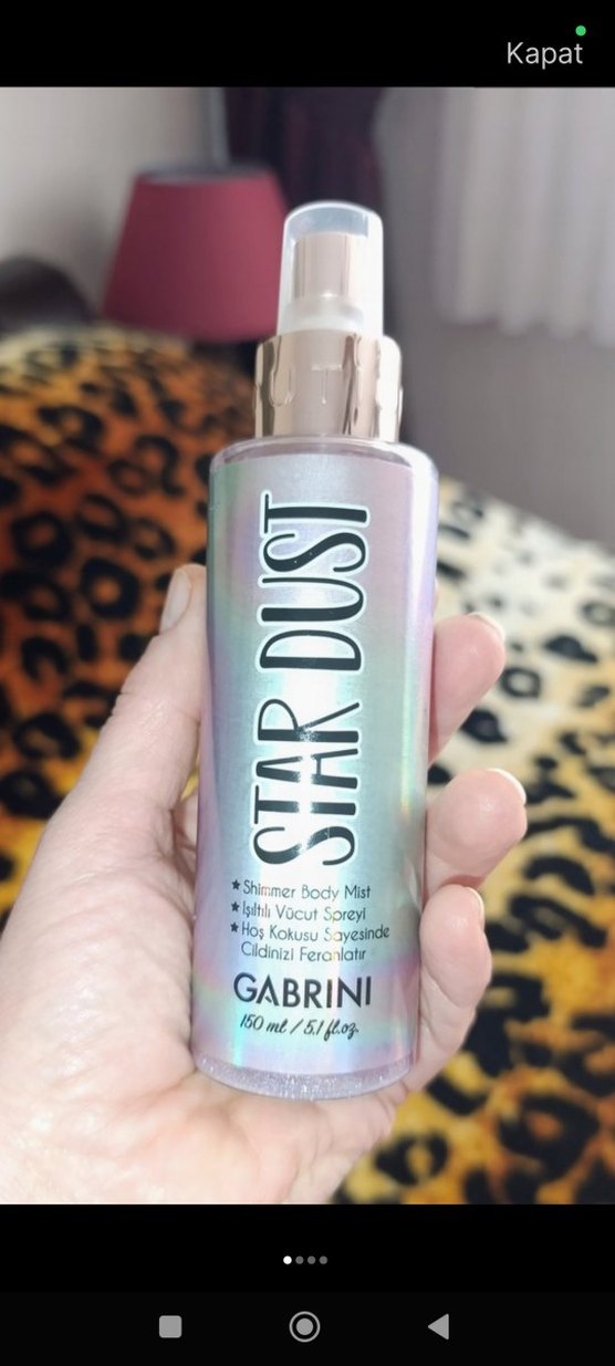 Gabrini Star Dust, 150ml parlak bej renkli vücut spreyi olup, sıcak kokusuyla cildinizi ferahlatır. ✨