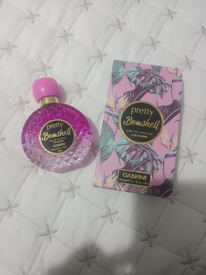 Gabrini Pretty Bomshell kadın parfümü, 50 ml cam şişede, çiçeksi ve ferah kokuya sahip. Şişesi pembe kapak ve dekoratif cam tasarımı ile.