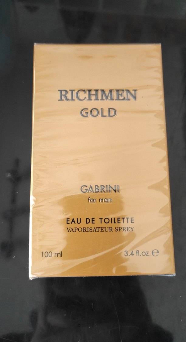 Gabrini Richmen Gold, 100 ml erkekler için eau de toilette spreyi, parlak altın renkli kutusuyla bohem Paris tarzını yansıtıyor.