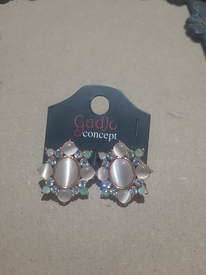 Pastel bej yeşil renkte, dogal taş küpeler .