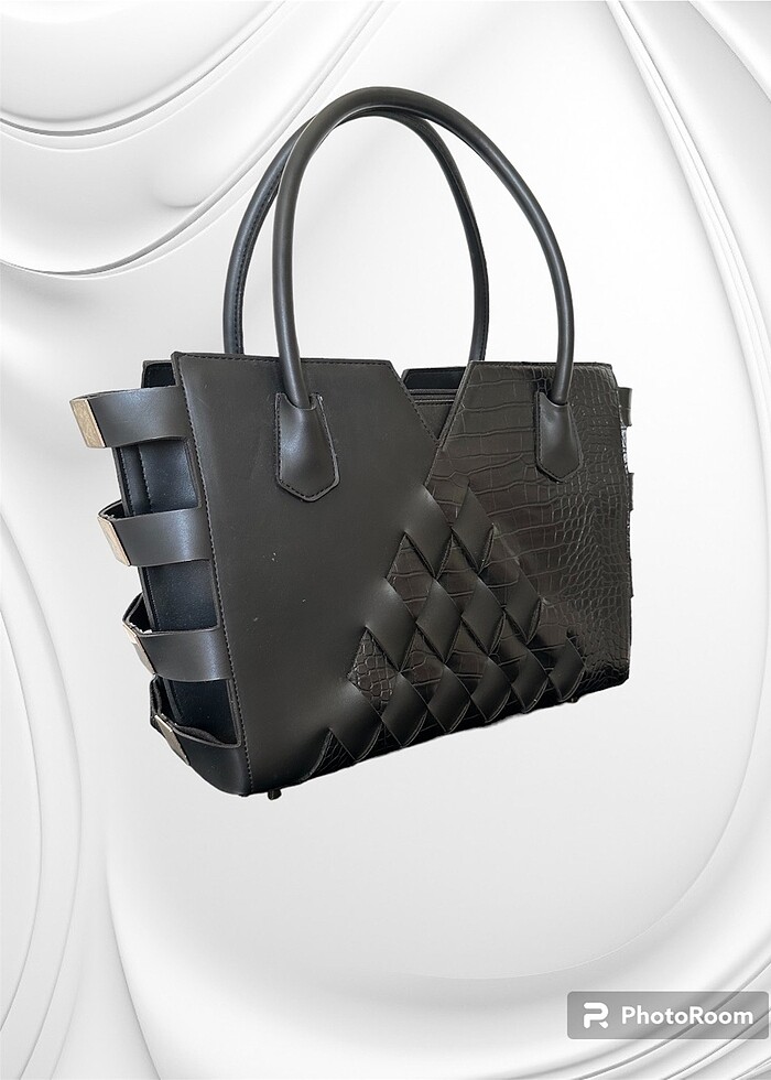 Galanti marka siyah deri çanta: Birkaç kez kullanıldı. Ebatları: 27 x 35 cm