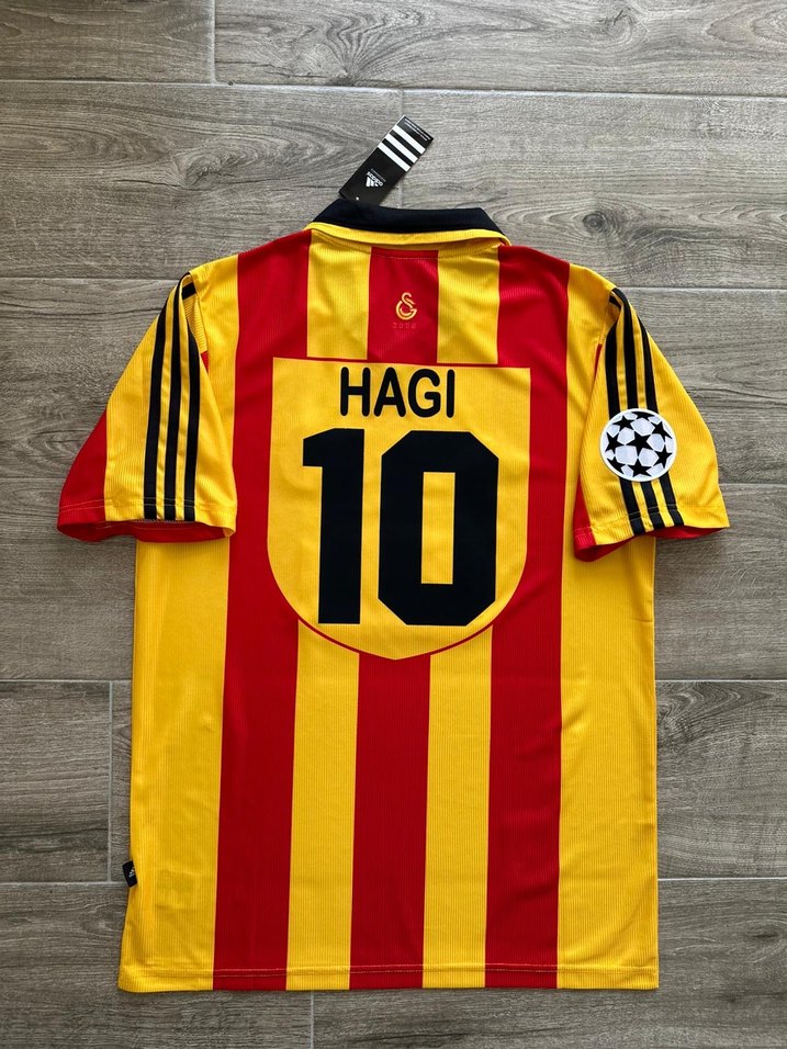 Galatasaray 1999-2000 İç saha “Gheorghe Hagi” forması. “L” bedendir, Sıfır ve etiketlidir. Ürünün sırtında HAGI #10 baskısı ve kolunda döneme ait Şampiyonlar Ligi Patch bulunmaktadır. Göğsündeki Marshall logosu kadife malzemedir. Harika bir koleksiyon ürünüdür. Adidas poşetinde gönderim yapılacaktır. S-M-L Bedenleri mevcuttur şimdilik.