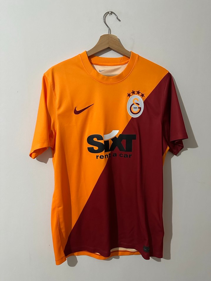 Galatasaray’ın 2023/2024 sezonu iç saha formasıdır. Nike Dri-Fit teknolojisine sahiptir, teri dışarı atan hafif kumaştan üretilmiştir. • Kulüp: Galatasaray • Sezon: 2023/2024 • Marka: Nike • Model: İç saha forması • Teknoloji: Dri-Fit • Beden: M (etiket fotoğrafta mevcut) • Durum: 2. El / Temiz kullanılmış • Detay: 5 yıldızlı arma – ön sponsor SIXT rent a car – sırt yazısı MAGDEBURGER SİGORTA