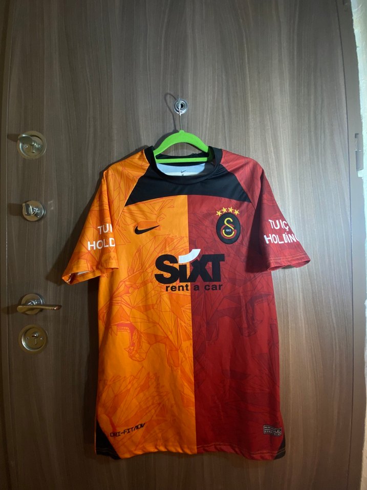 Erkekler için sentetik kumaştan, kısa kollu, yuvarlak yakalı, turuncu-kırmızı baskılı, bol kesim, spor ve athleisure tarzında Galatasaray formasıdır. Velcro detaylıdır.