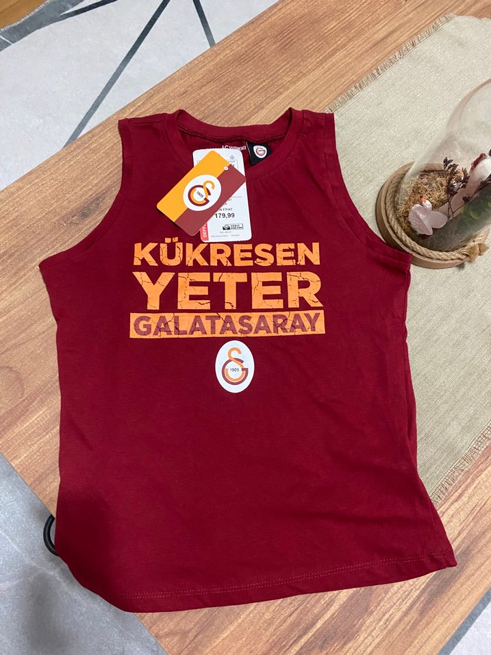 Galatasaray baskılı hiç kullanılmamış tişört sadece etiketi koparılmıştır hiç kullanılmamış tişört sıfır kol 6 7 yaş