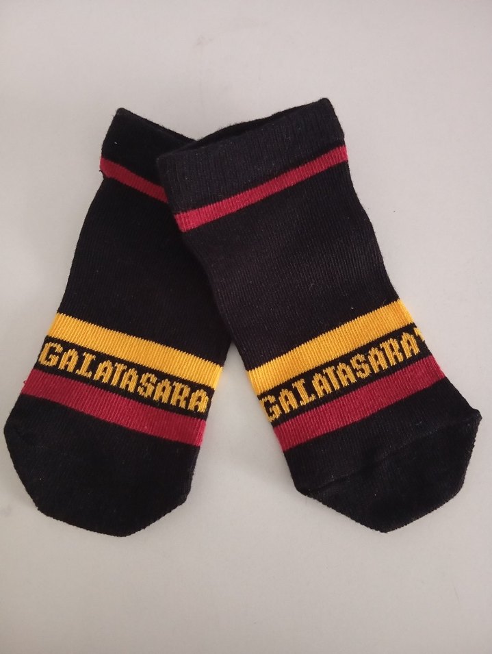 Erkek çocukları için siyah tabanlı, kırmızı ve sarı çizgili, üzerinde "GALATASARA" yazısı bulunan rahat çoraplar. yeni. 3,5 yaş