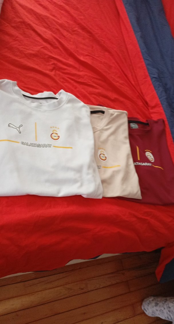 Galatasaray erkek tişörtü, kısa kollu ve yuvarlak yaka, bol kesimdir. Yumuşak ve sıcak kumaştan üretilmiş, baskılı desenli ve açık kırmızı renktedir. 3 adet fiyatı