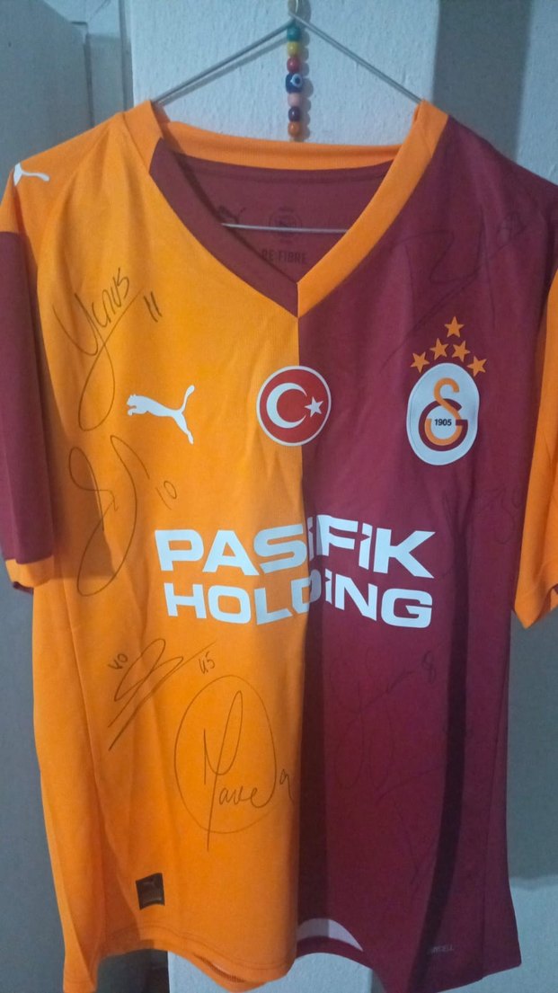 Galatasaray erkek forması, kısa kollu ve yuvarlak yakalıdır. İpek gibi parlak kumaştan, kahverengi-turuncu baskılı ve PASIFIK yazılıdır.