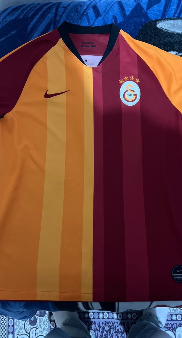 Galatasaray renklerinde, kısa kollu ve düğmeli, ince kesim erkek forma. İpek gibi kumaştan, bisiklet yaka, sokak stili için uygun. ⚽️