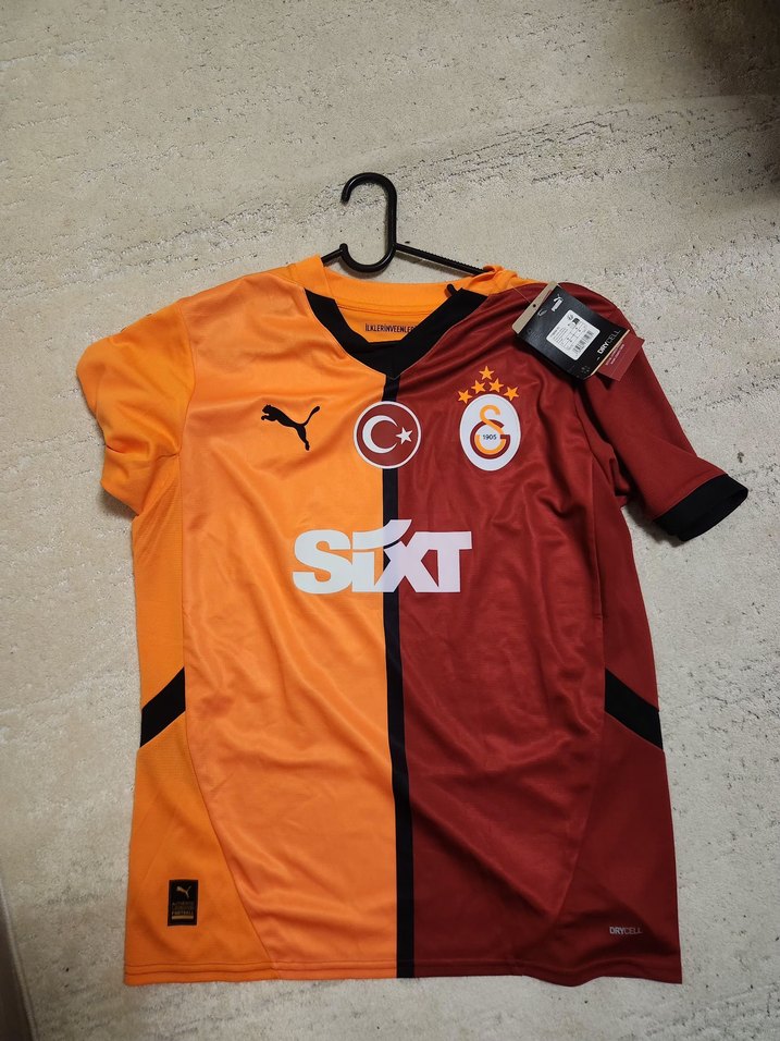 Kısa kollu, bisiklet yaka, dar kesim erkek forma. Turuncu ve koyu renklerin baskılı kombinasyonu, Velcro detaylı, sentetik kumaştan. Spor ve günlük kullanım için uygun. ⚽