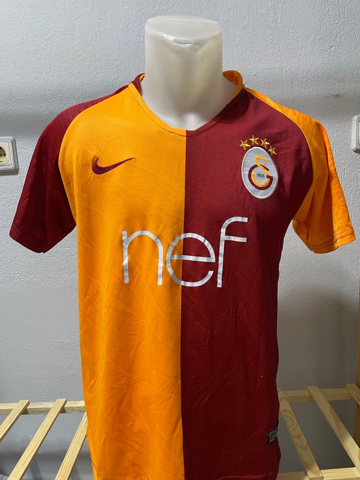 Bu erkek Galatasaray forması, yuvarlak yaka ve kısa kolludur. Bol kesimiyle sarı ve koyu kırmızı renklerde baskılı tasarıma sahiptir. 'nef' yazısı ve Galatasaray logosu ön plandadır. Sentetik kumaş ve cırt cırt detaylıdır. ⚽