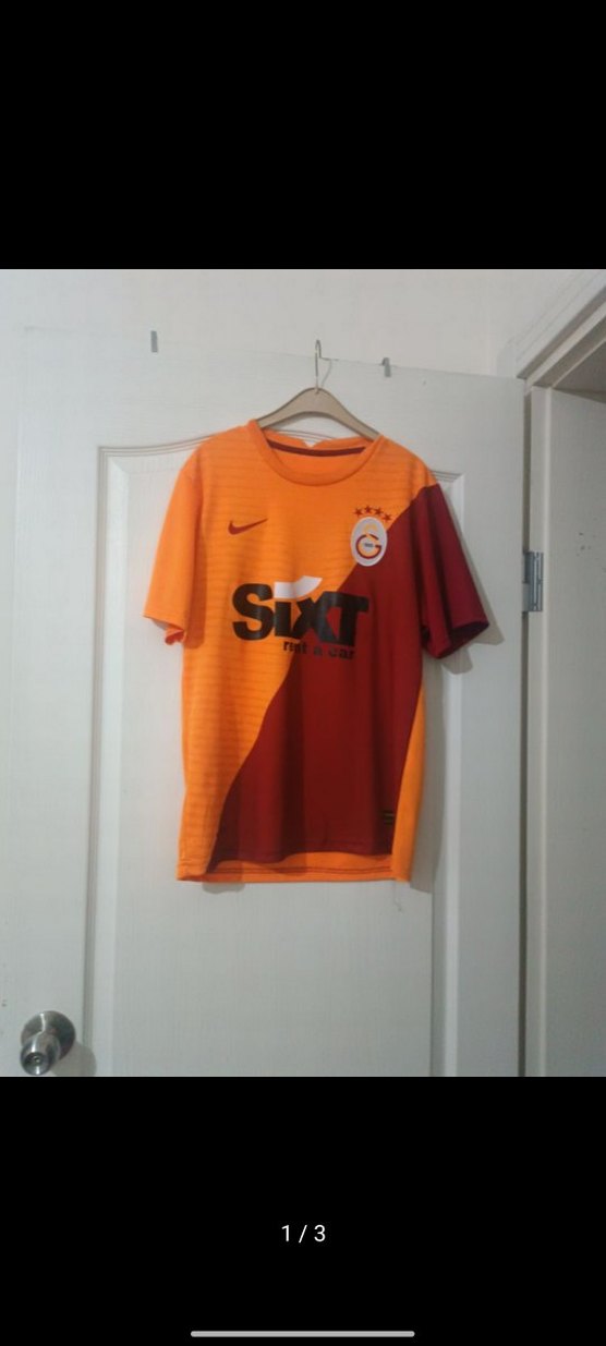 Galatasaray erkek kısa kollu spor forması, yuvarlak yaka ve bol kesimlidir. Koyu turuncu ve bordo baskılı, satenimsi kumaştan, ⚽