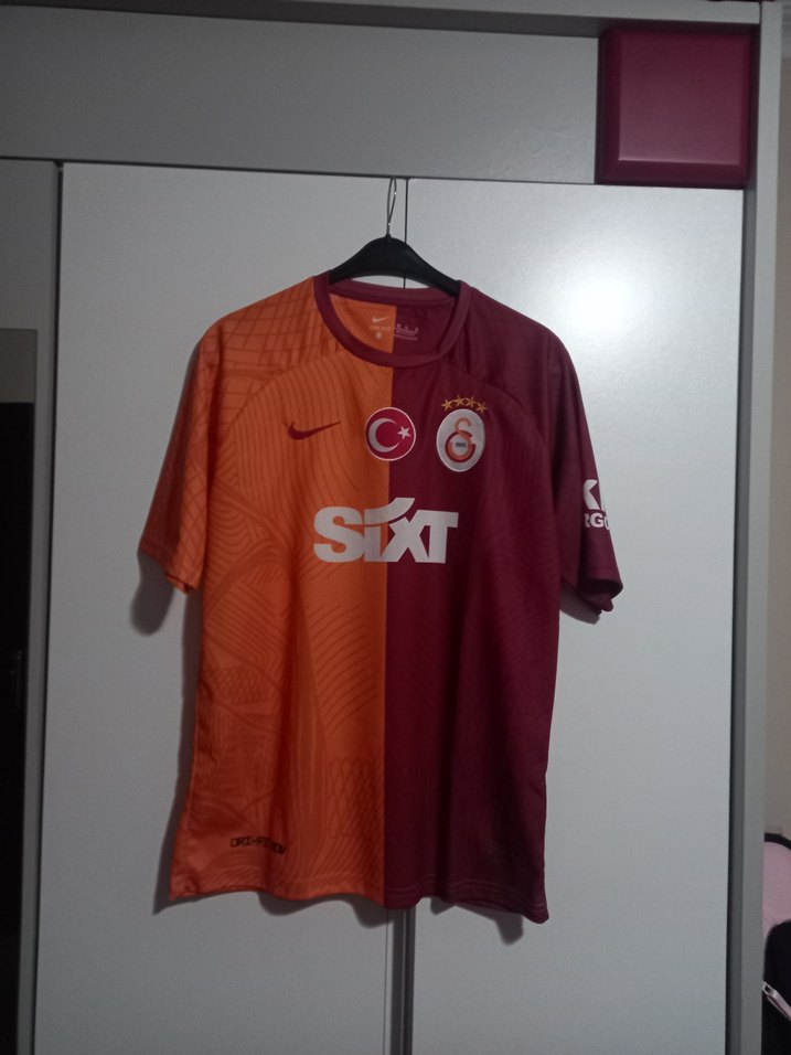 Galatasaray 2023/2024 Parçalı İç Saha Forma Kısa kollu, yuvarlak yakalı ve bol kesim erkek spor forması. ICARDI baskılı desene sahip, koyu kırmızı-turuncu tonlarında. Önünde 'SIXT' logosu ve takım armaları bulunur. ölçüleri görsellerde mevcuttur. Hiç kullanılmadı. Orjinal değildir birebir uyumlu ürün