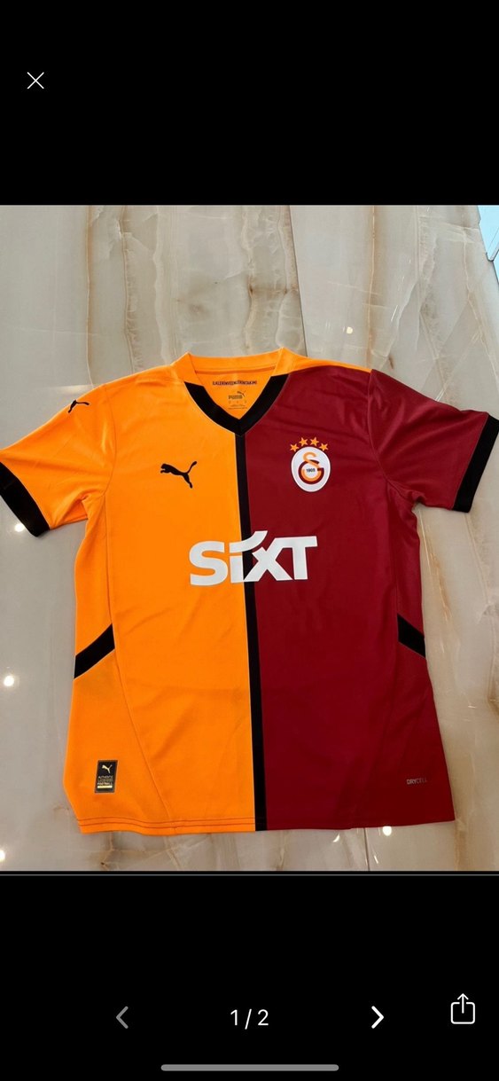 Erkekler için kısa kollu, bisiklet yakalı ve vücuda oturan kesimde, sentetik kumaştan yapılmış Galatasaray spor forması. Önde SiXT baskısı ve cırt cırt detayları bulunur.