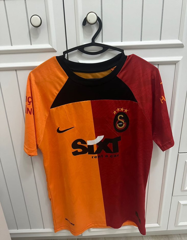 Kısa kollu, yuvarlak yakalı ve bol kesim erkek forma. Turuncu-kırmızı baskılı, sentetik kumaştan üretilmiş. Cırt cırt detaylı, gündelik kullanıma uygun athleisure tarzı. ⚽