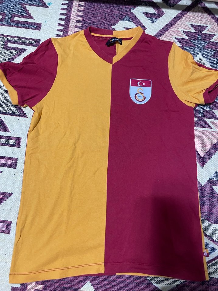 Bordo ve sarı renklerde, V yaka ve düğmeli kısa kollu erkek tişörtü. Sentetik kumaştan, baskılı ve rahat kesim, günlük kullanım için uygun.