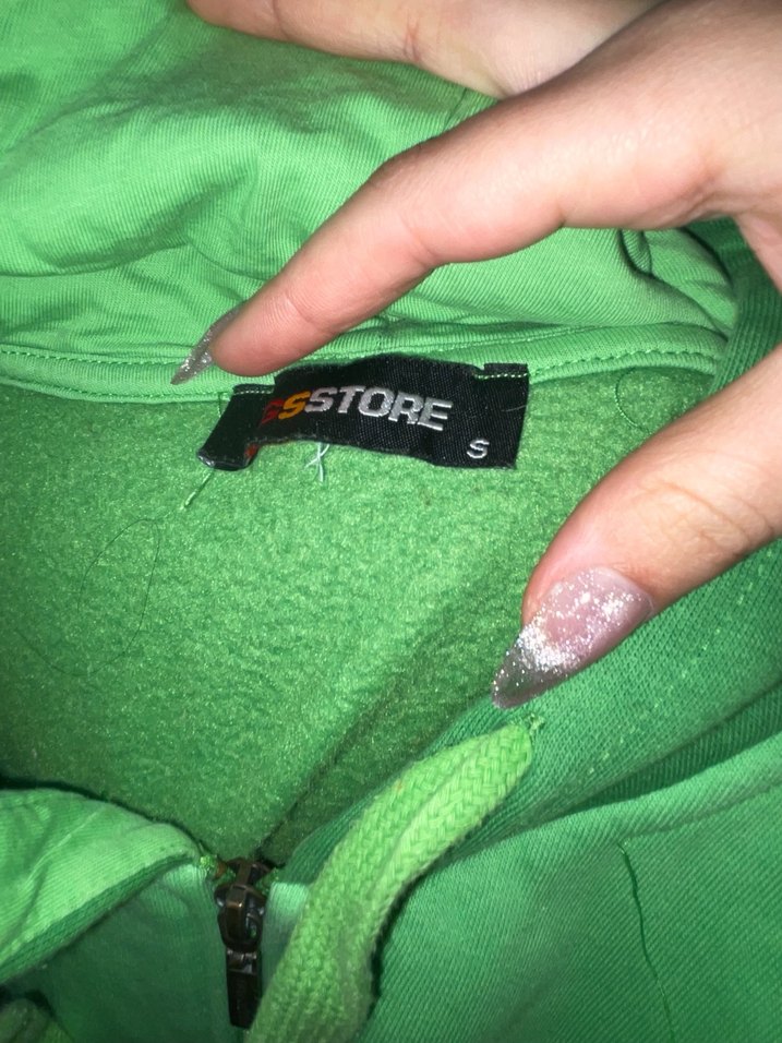 SSTORE markalı, parlak yeşil renkte, desen içermeyen, fermuarlı kullanışlı hırka