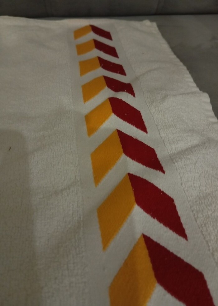 Galatasaray Hummel beyaz renk üzeri parçalı şeritli amblem detaylı el yüz havlu su