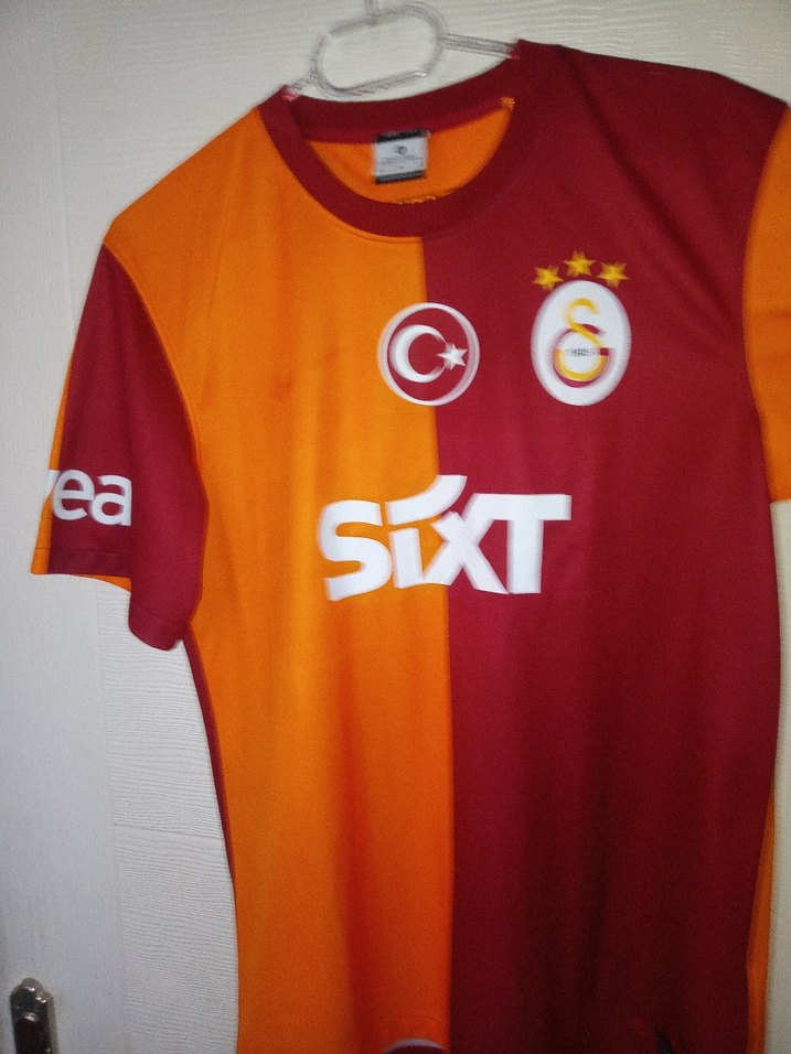Kısa kollu, bisiklet yakalı, bol kesim erkek forma. Koyu kırmızı ve turuncu renklerde, baskılı desenli ve cırt cırt detaylıdır. Spor ve günlük kullanıma uygundur. Logolar: ea, SIXT. ⚽ Ürünün çok hafif defosu vardır. Oda sponsor kısmında Türk Telekom yerine basılmıştır. Onun dışında kusuru yoktur. Sağlam üründür.