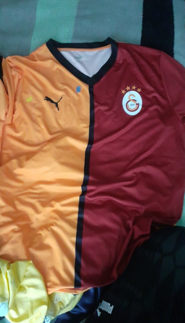 Galatasaray logosu ve düğmeli detaylarla kısa kollu, bisiklet yaka, parlak kırmızı ve sarı renkli, fit kesim erkek forma. Spor ve günlük şıklık için uygun.
