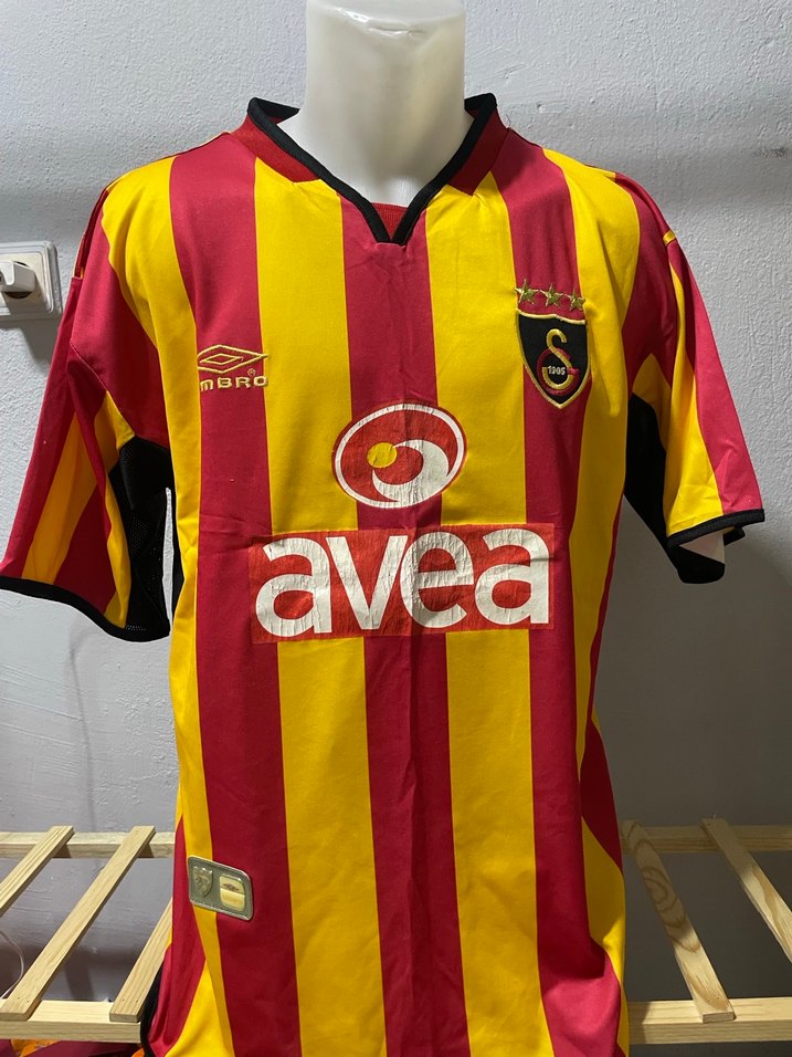 Sarı ve kırmızı çizgili, kısa kollu ve yuvarlak yakalı erkek forma. Sentetik kumaştan, bol kesim ve Velcro detaylı. Spor tarzında, üzerinde 'avea' baskısı bulunur. ⚽