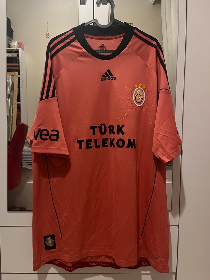 Galatasaray logosu ve Türk Telekom baskılı, velcro detaylı, sentetik kumaştan üretilmiş, salaş kesim, kısa kollu pembe orjinal spor forma. ⚽