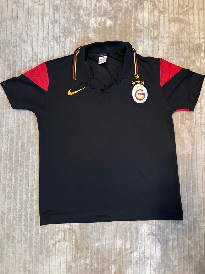 Orjinal çocuklar için L beden ama s giyenlere olur ufak sorunları var fotoğraflarını yükledim Galatasaray logosu ve kırmızı omuz detaylarıyla siyah kısa kollu polo forma. Sentetik kumaştan, düğmeli yaka ve rahat kesime sahip