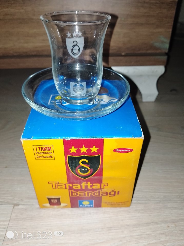 Galatasaray armalı, parlak camdan oluşan çay bardağı ve tabağı takımı. Taraftarlar için tasarlanmıştır. ☕ Paşabahçe 6 adet