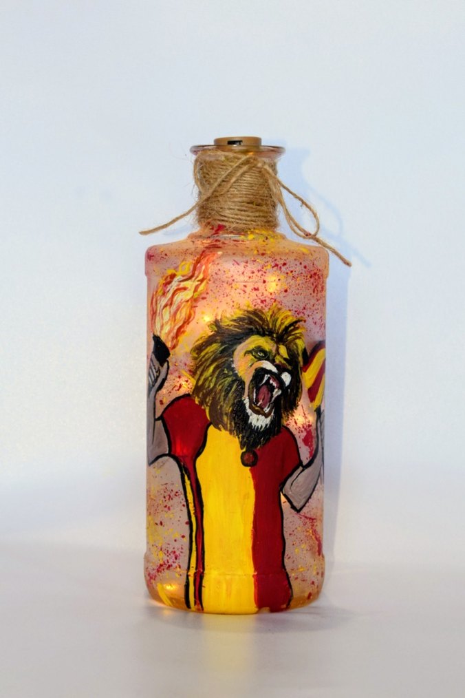 Galatasaray temalı Akrilik boya tekniği ile çalışılmış ve verniklenmiştir olup içerisinde mantar şeklinde peri led ışık vardır değiştirilebilir üç adet pil vardır