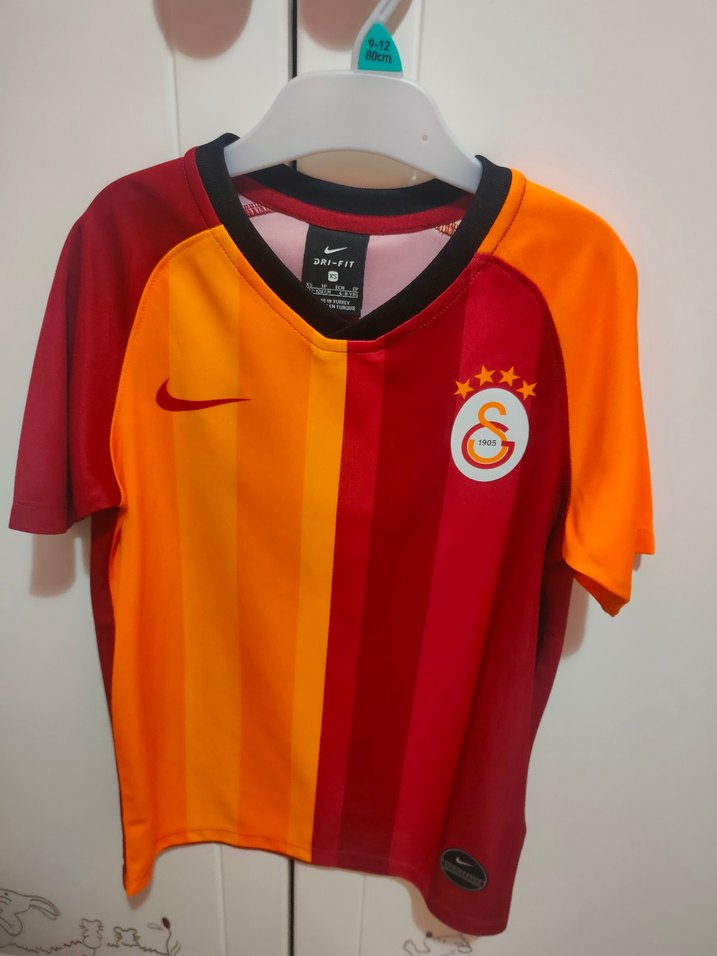 Koyu kırmızı ve turuncu baskılı, kısa kollu, bisiklet yaka ve yapışkan detaylı, sentetik kumaştan yapılmış, dar kesim forma.6-8yas.Kizim sadece bir kere giydi küçüldü hiç giyemedi bir daha.Cok iyi durumda forma