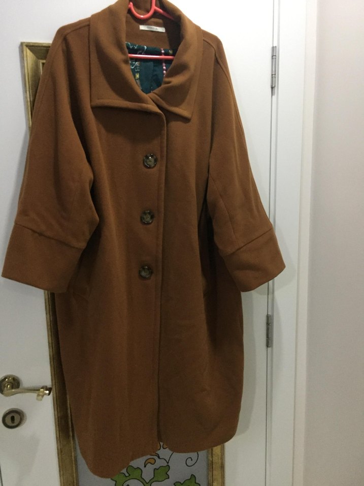 GALAXI marka Düğmeli, kahverengi, uzun ve bol kesim kadın kabanı, yakası kesik ve uzun kolludur. Yumuşak ve sıcak kumaştan üretilmiştir, rahat sokak tarzı için uygundur.