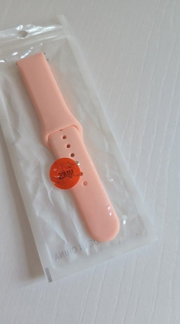 20mm genişliğinde, somon renkte ve yumuşak dokulu silikon akıllı saat kayışıdır. Samsung galaxy watch active 2 için alınmış olup çoğu 20mm lug genişliğine sahip saatle uyumludur. Hiç kullanılmamış olup deformesi bulunmamaktadır.