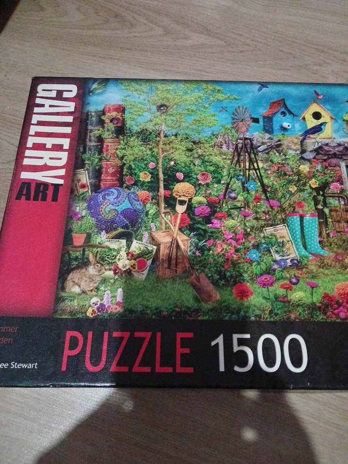 GALLERY Art koleksiyonundan Stewart imzalı 1500 parçalık puzzle, canlı ve koyu renklerle detaylı bir bahçe manzarası sunuyor.