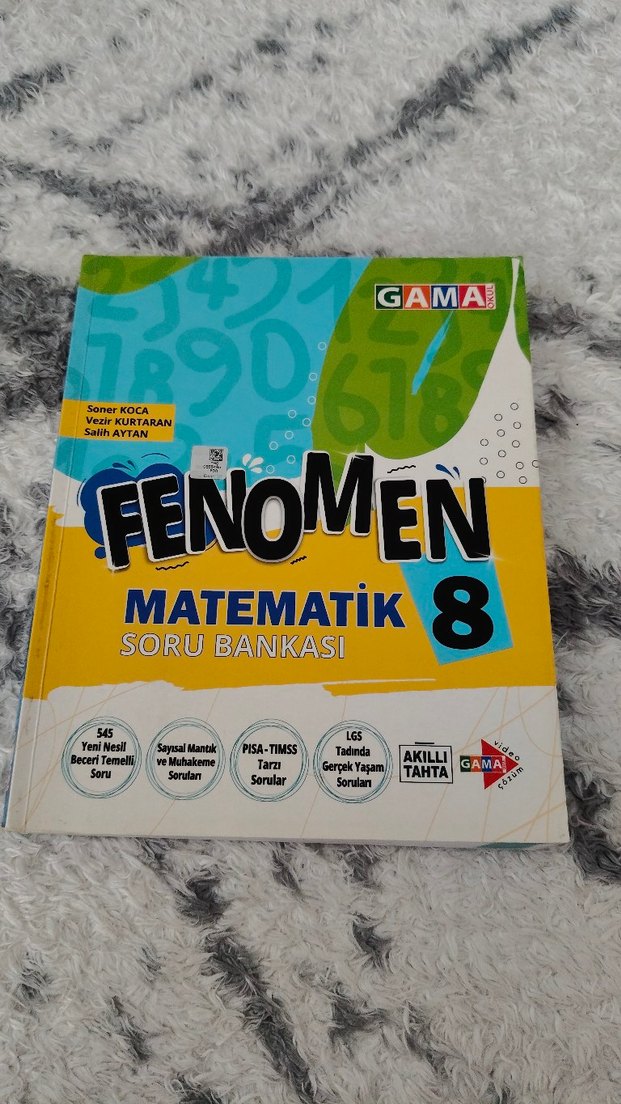 Fenomen 8 Matematik Soru Bankası, yeni nesil beceri temelli sorular, PISA-TIMSS tarzı problemler ve gerçek yaşam soruları içerir. 8.sınıf fenomen matematik soru bankası. kitap arkadaşın 61.sayfaya çözülmüştü. silindi yalniz fosfor lu kalem tikleri kalmıştır. diğer sayfalar temizdir.