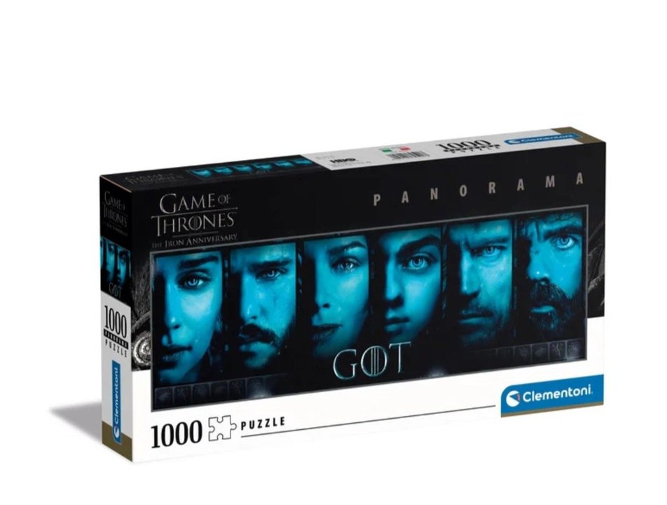 1000 parçalı Game of Thrones puzzle, koyu mavi tonlarda ve dizinin önemli karakterlerini içerir. Irun yıldönümünü kutlayan panoramik tasarıma sahiptir.
