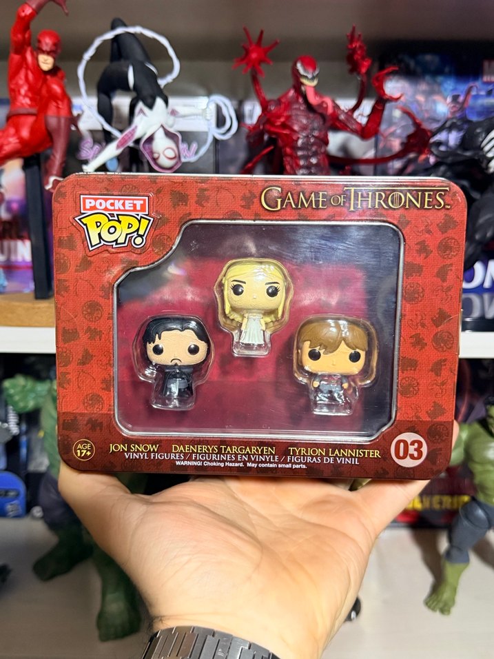 Game of Thrones Pocket Pop! setinde Jon Snow, Daenerys Targaryen ve Tyrion Lannister figürleri bulunur.