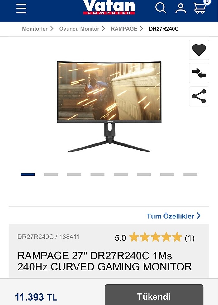 27 inç 240hz 1ms 1920x1080 “KAPALI KUTU” Beğenirseniz fiyatta anlaşırız.