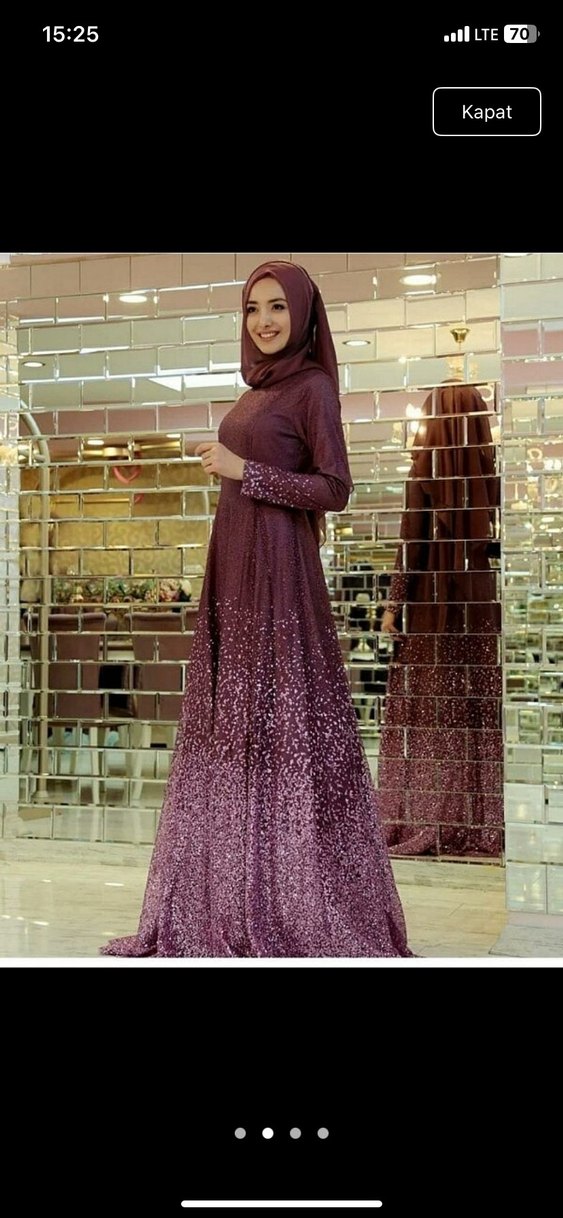 Gamze Özkul marka Uzun Kollu Parlak Abiye Elbise