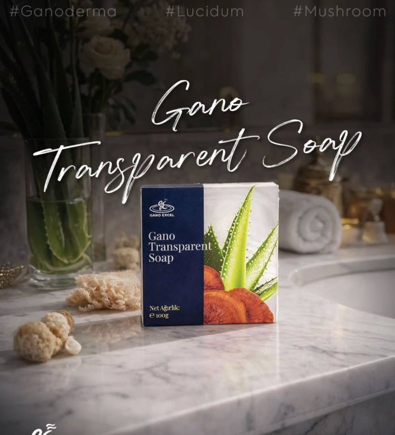 Gano Şeffaf Sabun, aloe vera ve mantar özleriyle cildi nazikçe temizleyip besler. 100 gramlık pakette sunulur.
