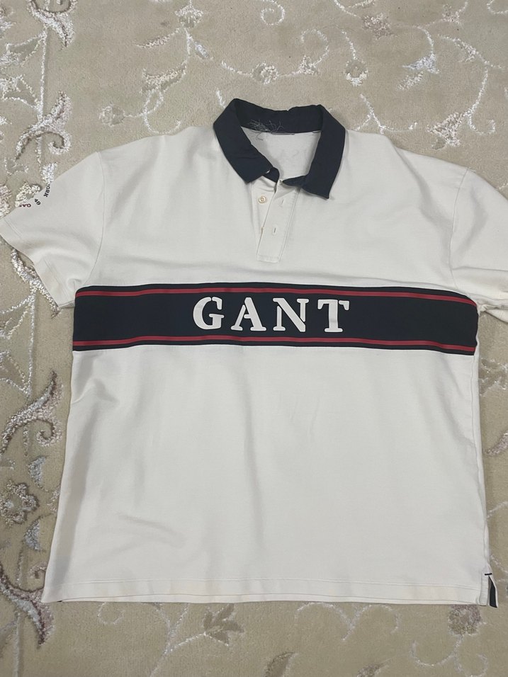 GANT markalı, kısa kollu, düğmeli yakalı, pamuklu, beyaz ve gri baskılı fitted erkek polo tişört. Rahat sokak stili için uygundur. Orijinal 3 xl geniş kesim