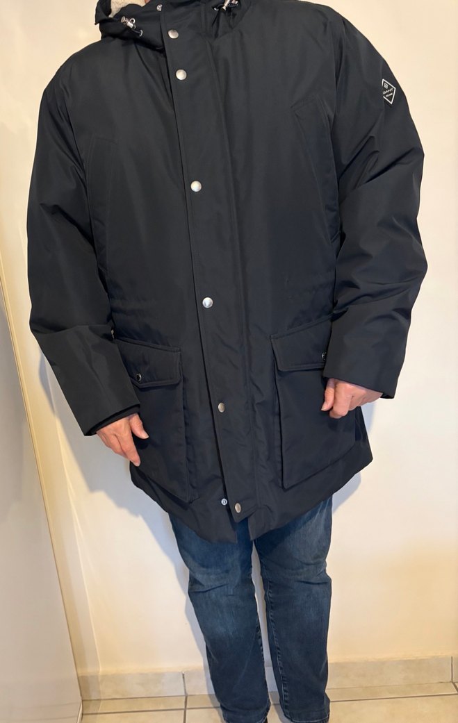 Gant Düğmeli, lacivert erkek midi mont, yumuşak ve sıcak polar kumaştan. Uzun kollu ve regular fit, sokak tarzı ve günlük kullanım için uygundur.