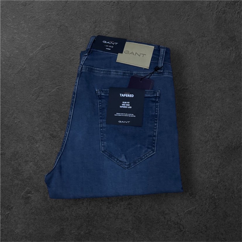 GANT Erkek Lacivert Düğmeli Tapered Kot Pantolon
