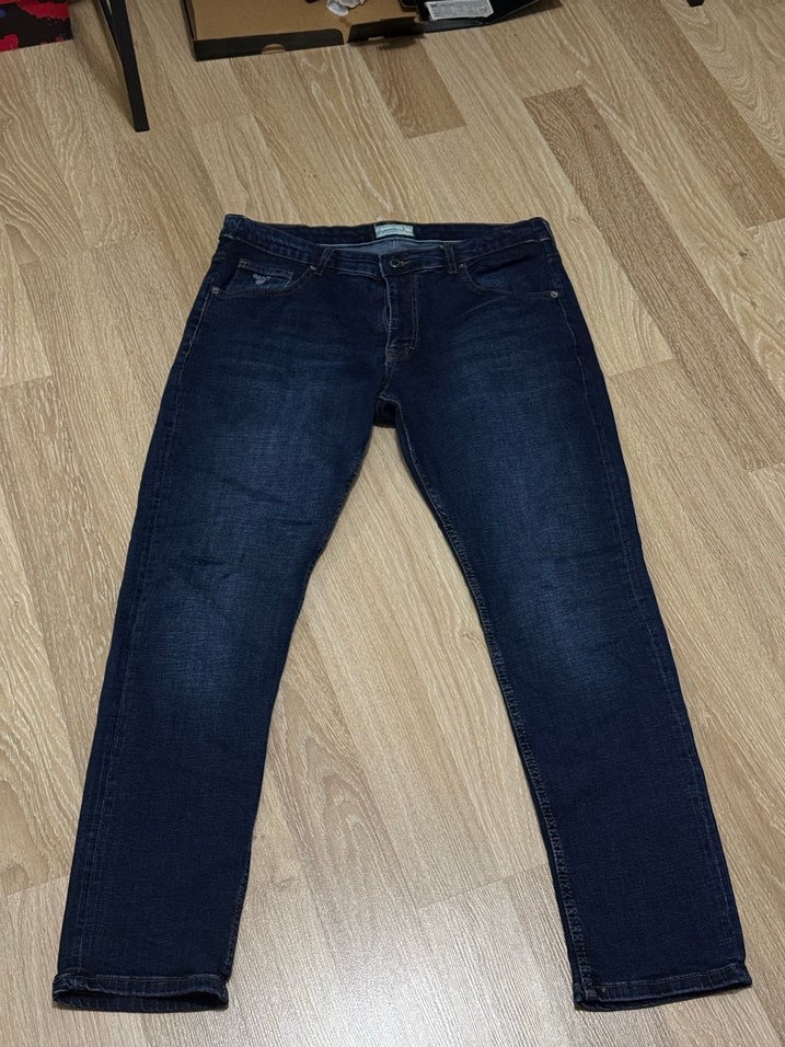 Lacivert renkte, regular fit ve normal boyda denim erkek jean. Desensiz tasarımıyla günlük kullanıma uygun, rahat ve şık bir stil sunar.