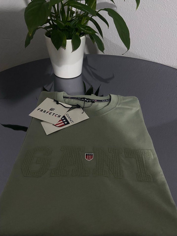 GANT erkek tişörtü, yuvarlak yaka ve kısa kolludur. Yeşil renkte, sentetik kumaştan üretilmiş, rahat kesim ve baskılı logo detayına sahiptir.