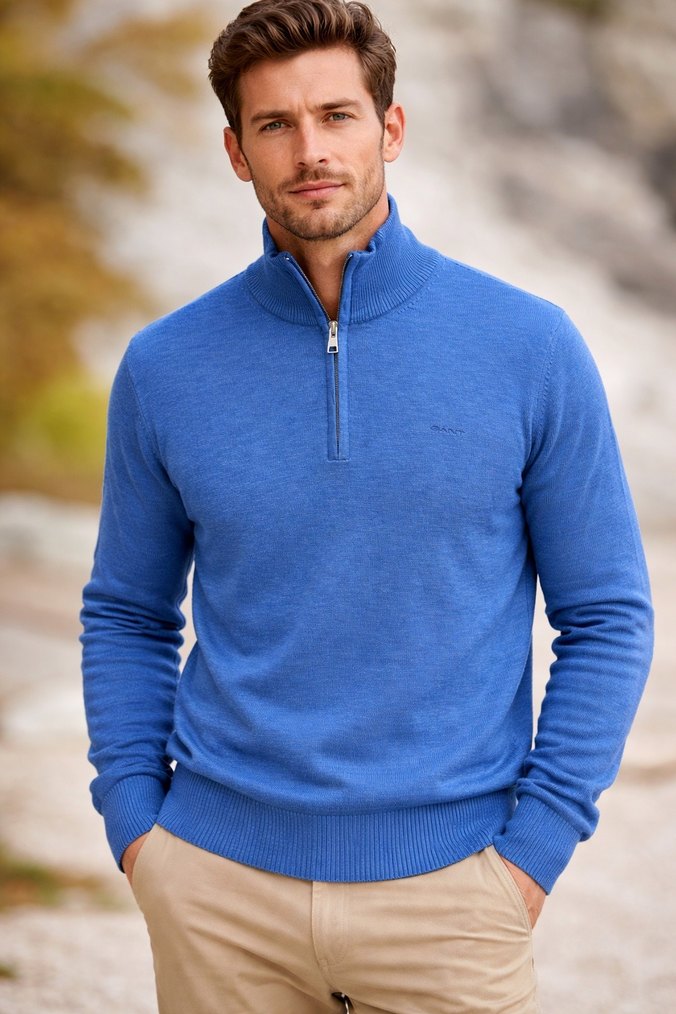Gant marka Yarım Fermuarlı Yaka Mavi Erkek Triko
