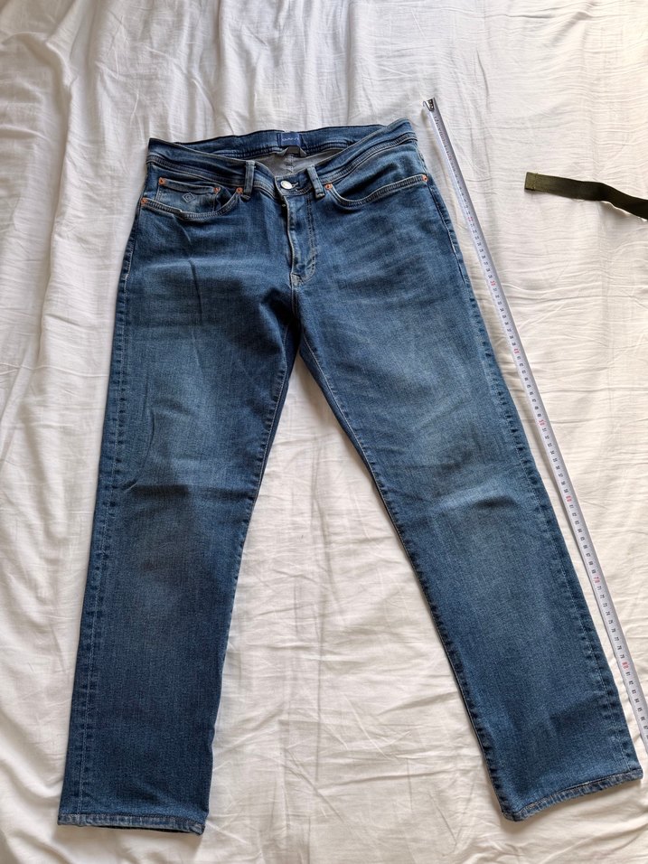 Gant mavi renkli erkek jean. W32/L32 beden. Gant Maxen model. Sıfırdan farksız, hiçbir kusuru bulunmamakta. Gant Zorlu Center AVM'den alınma.