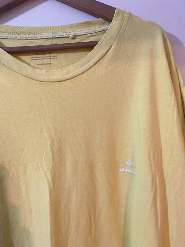 Pamuk kumaştan, kısa kollu, yuvarlak yakalı ve bol kesimli sarı GANT erkek tişörtü. Minimalist ve desensiz tasarımıyla günlük kullanım için uygundur.