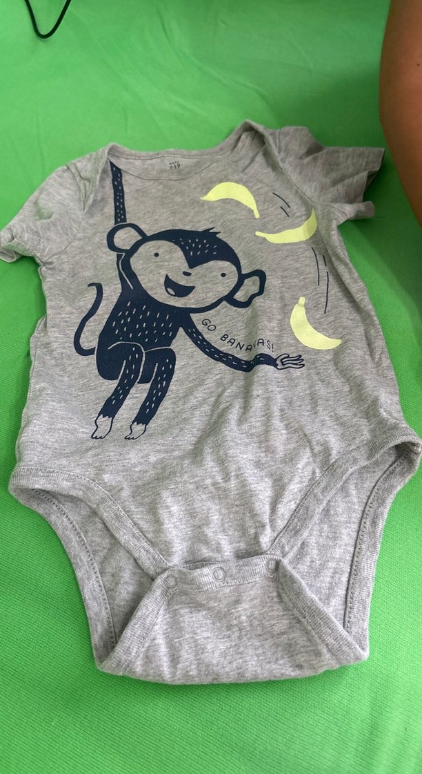 Pamuklu, bisiklet yaka ve kısa kollu bebek body. Oyuncu maymun baskısı ve kolay giydirme için çıtçıtlı kapama içerir. Hiç kusuru yok