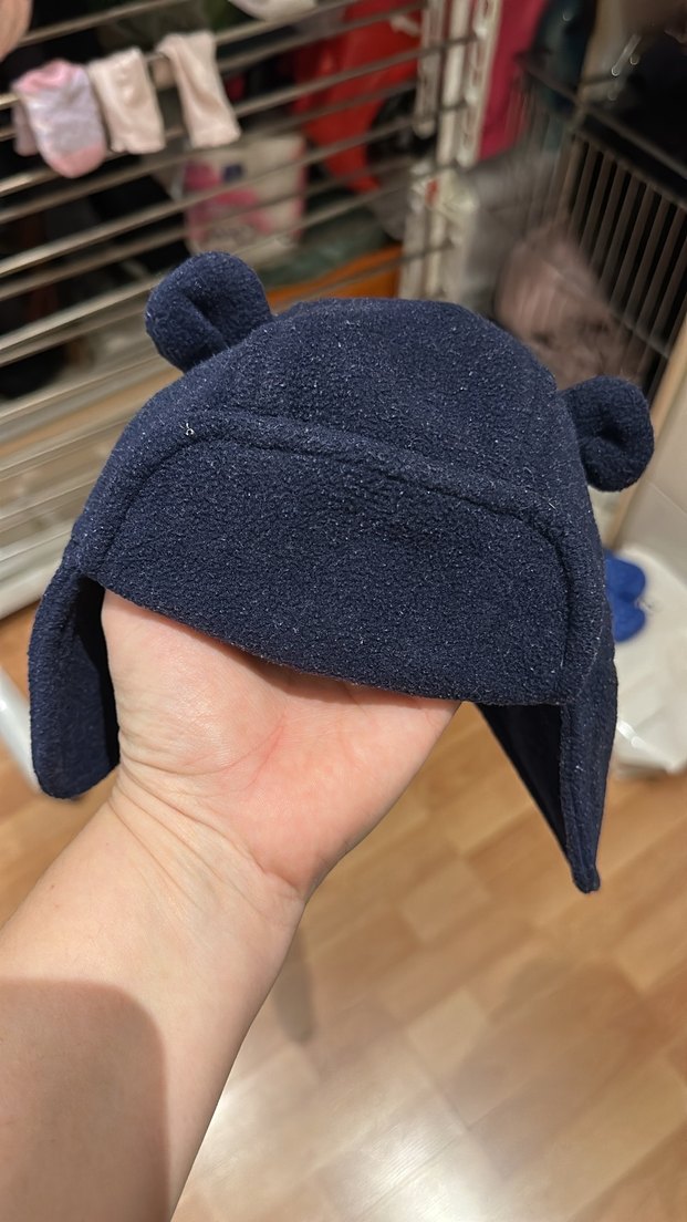 Bira tüylenmesi var üst polar kısmında altı kumas başka kusuru yok.çocuklar için koyu lacivert renkte, yumuşak ve sıcak polar kumaştan yapılmış şapka. Ayarlanabilir cırt cırtlı, sade tasarımlı streetwear tarzında.